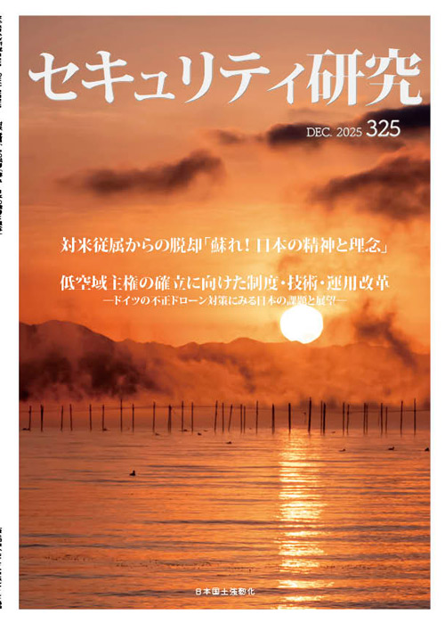 対米従属からの脱却「蘇れ!日本の精神と理念」 (鈴木壮治) / 低空域主権の確立に向けた制度・技術・運用改革―ドイツの不正ドローン対策にみる日本の課題と展望― (久保田ようじ) / 行動心理学の政治利用とセキュリティビジネスの新潮流③ (柴田泰成) / 2025 年を振り返って (住谷 健) / なりすまし受験対策④ (セキュリティ人材養成センター®) / セキュリティの境界は消えた――コンバージド・セキュリティの時代② (山田健太朗) / デジタルツインが創る次世代の公共空間セキュリティ② (望月政伸) / SECURITY Info. 有力企業16 社 / 他